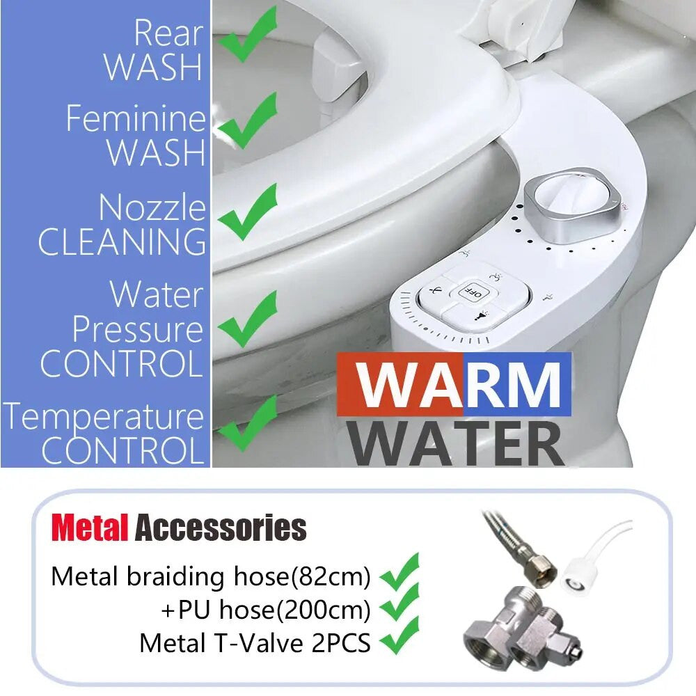 Introducing the ultimate feminine hygiene solution - our Hot & Cold Toilet Seat Spray Wash! With a dual temperature setting, this seat spray wash provides a refreshing and soothing experience every time you use it. The easy-to-use spray nozzle allows you to adjust the water pressure according to your preference, ensuring maximum comfort and cleanliness.