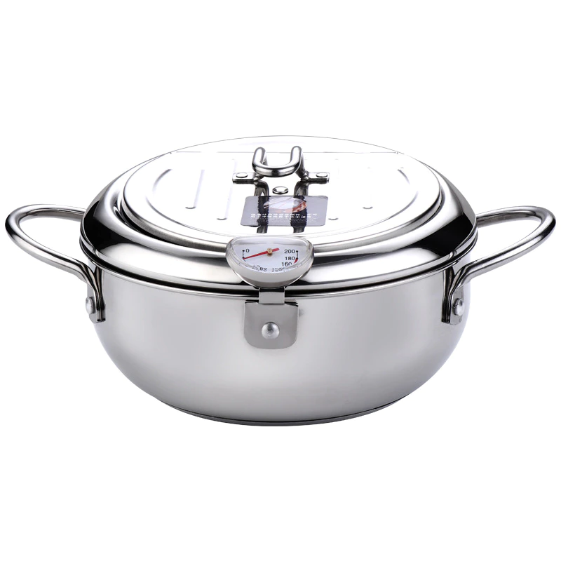 This Japanese Deep Frying Stainless Steel Pot is the perfect addition to any kitchen. It is made with high-quality, durable stainless steel, and is designed to ensure even heat distribution and easy cleaning. Its ergonomic handle provides a comfortable grip, and its non-stick surface ensures mess-free cooking. This pot is perfect for deep-frying, sautΓ©ing, and more. This pot is an essential kitchen tool and will make cooking a breeze.