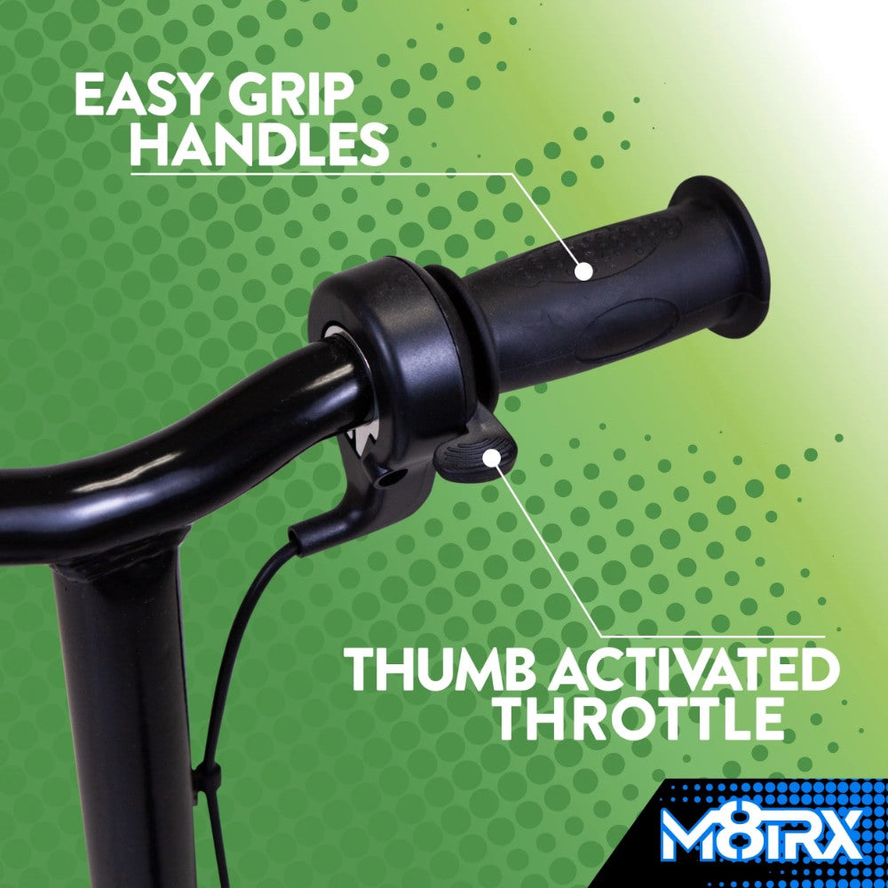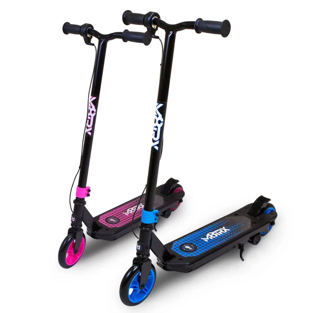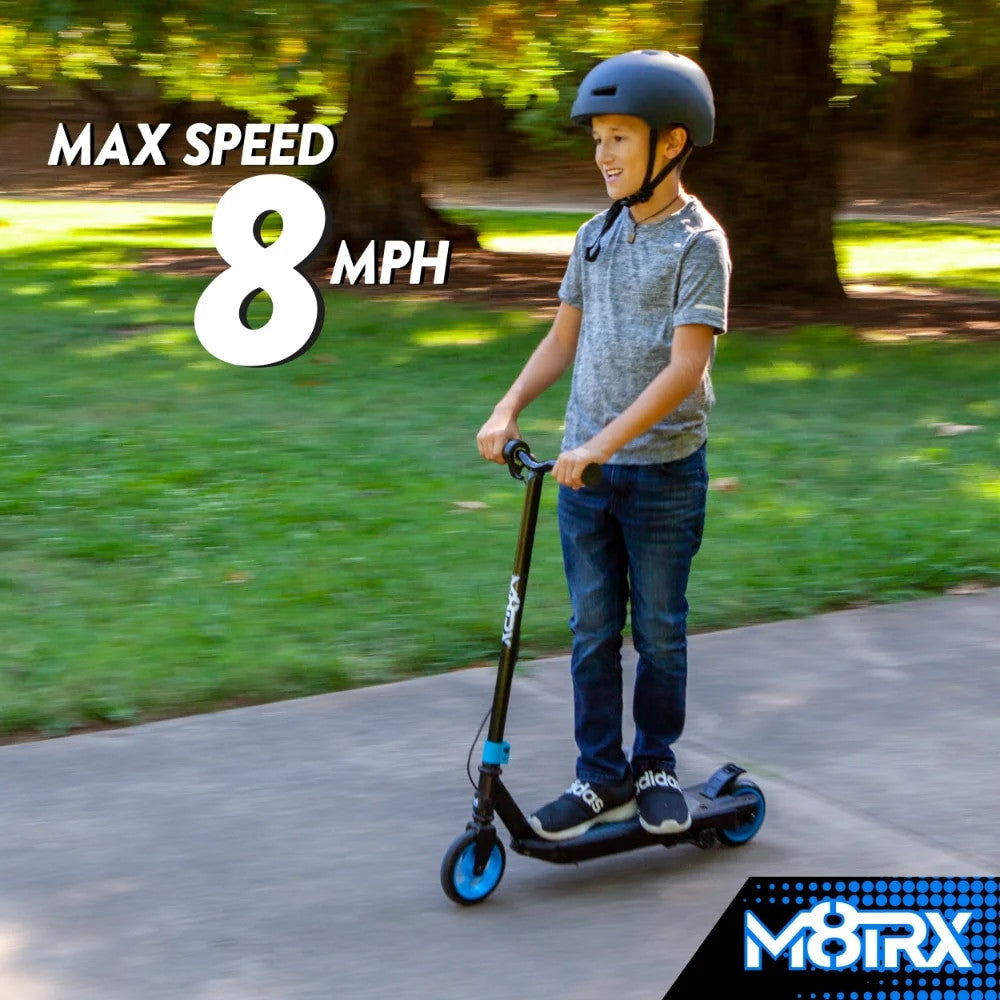 Introducing the M8trix Blue 12V Electric Kids Scooter with the latest Electrickicks technology that ensures smooth and stable riding experience. The scooter is designed with safety as the top priority, equipped with a sturdy frame, durable wheels, and efficient braking system. The 12V battery provides a long-lasting ride, with a top speed of 10mph