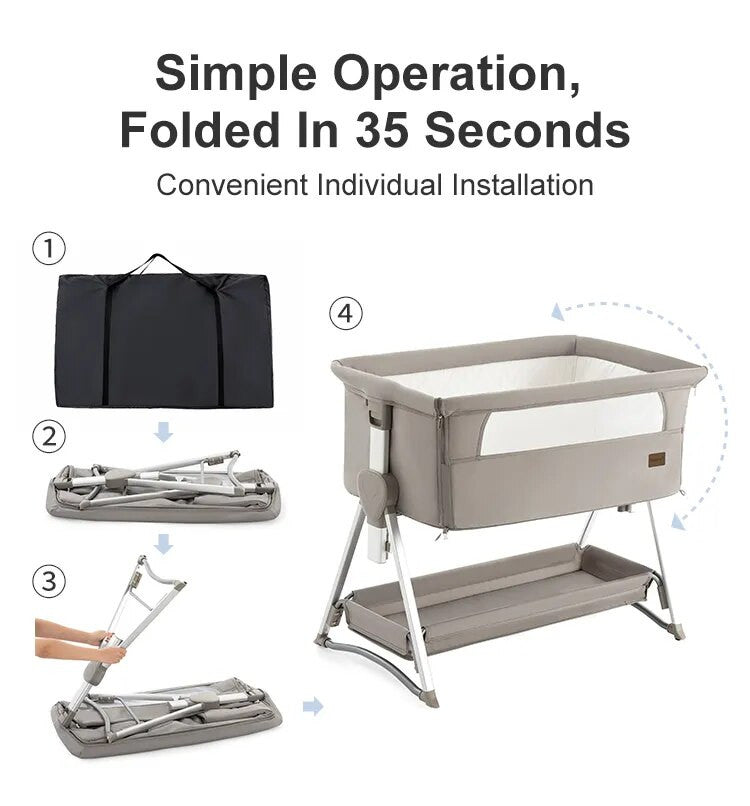 Our crib is made from high-quality materials and features a comfortable and breathable mattress to ensure your baby gets a good night's sleep. The crib is lightweight and easy to assemble, making it perfect for travel or for use in smaller spaces. With its compact size and stylish design, our portable infant crib is a must-have for any new parent.