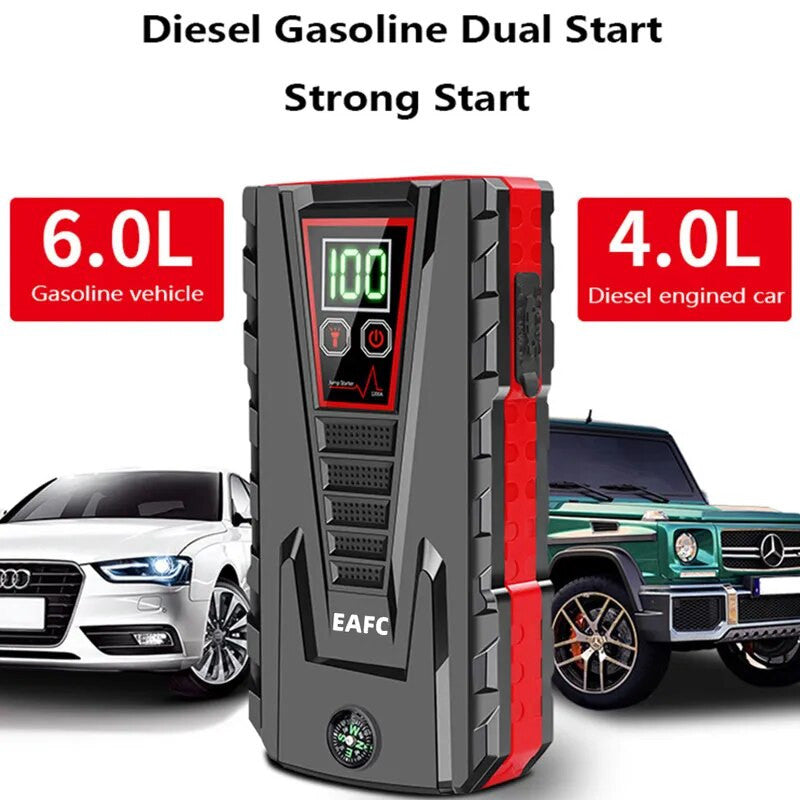 Look no further than the Portable Car Jump Starter Power Bank with its powerful and compact design. This car jump starter power bank is packed with features such as a high-capacity battery, built-in LED flashlight, and multiple safety protections. With this jump starter power bank, you can easily jump-start your car in just a few minutes