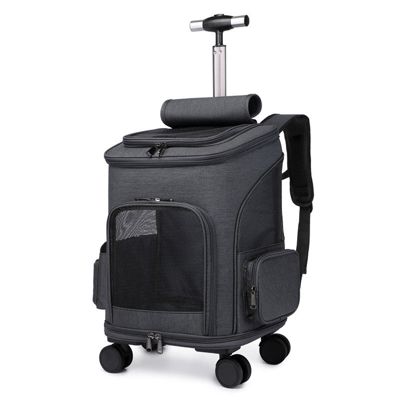 This backpack trolley is perfect for pet owners on-the-go who want to bring their furry friends with them. The sturdy design can hold up to 25 pounds and features a breathable mesh window for your pet's comfort. The backpack and trolley can be used separately or together for added convenience. Take your pet with you wherever you go with our Portable Pet Folding Backpack Trolley.