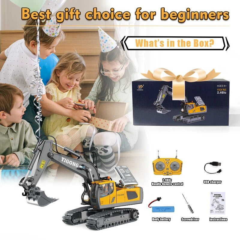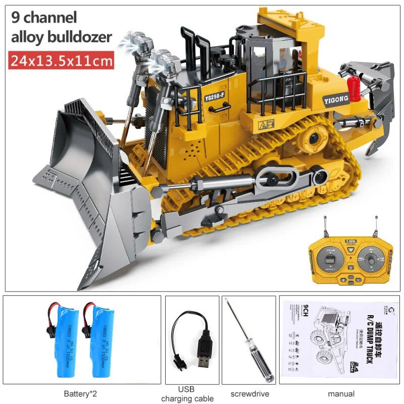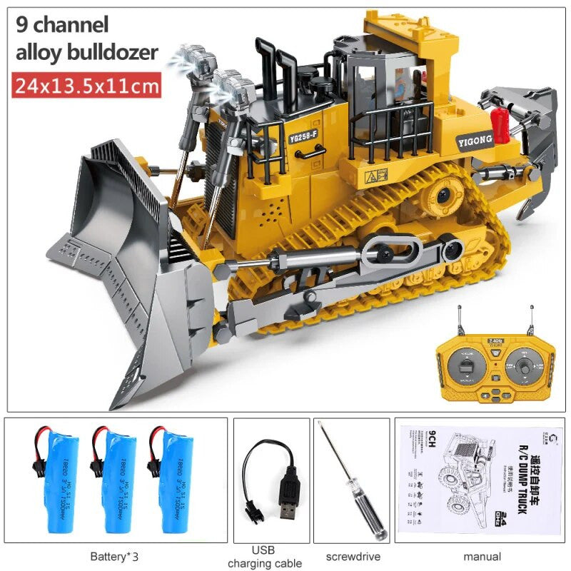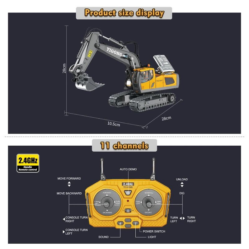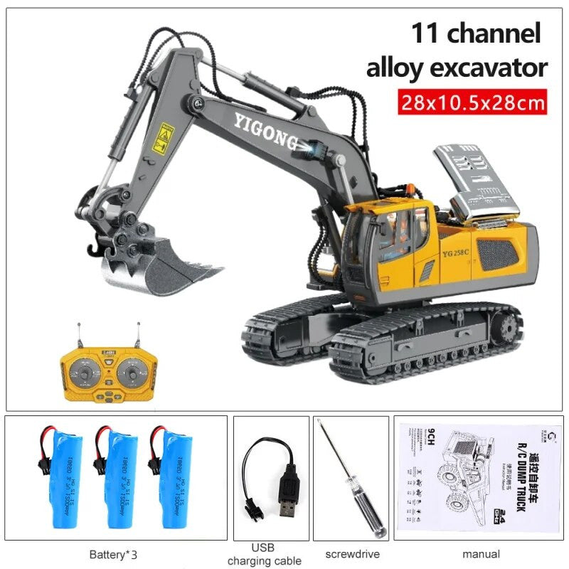 Introducing our RC Excavator, Bulldozer, and Toy Dump Truck Track! This set is the perfect addition to any child's collection of construction toys. The excavator and bulldozer are both fully functional, allowing kids to dig and move dirt, sand, and small rocks. The dump truck can be loaded and unloaded, providing endless opportunities for imaginative play.