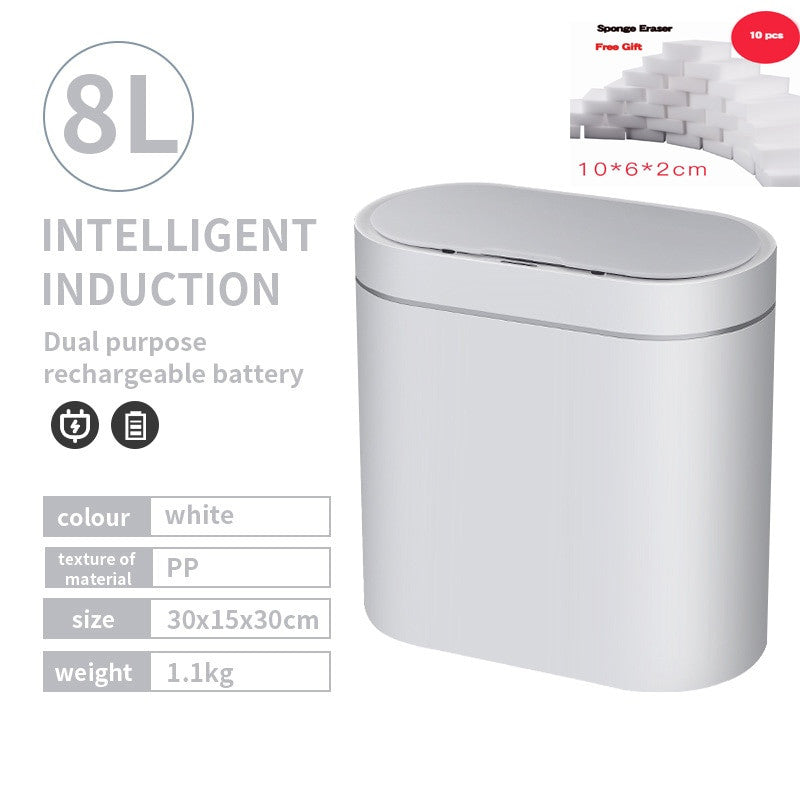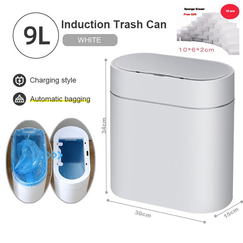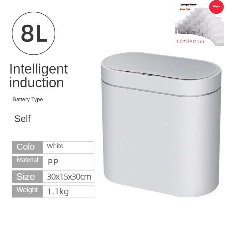 Introducing the Smart Sensor Auto Electronic Trash Can with a sleek and modern design. This trash can features an automatic opening and closing lid with a sensor that detects movement within 10 inches. The trash can also includes a removable inner bucket for easy cleaning and a fingerprint-resistant surface to keep it looking clean