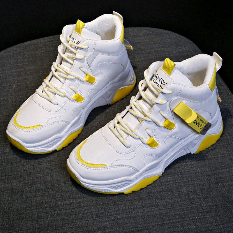 Our Women's High-Top Sneakers are the perfect combination of fashion and comfort. Featuring a classic design with a contemporary twist, these shoes will keep your feet looking great and feeling great. The padded collar and cushioned insole will provide superior comfort for your feet, while the lace-up closure ensures a secure fit. Crafted with a durable rubber outsole to provide traction and stability, these sneakers will be your go-to shoes for any occasion.