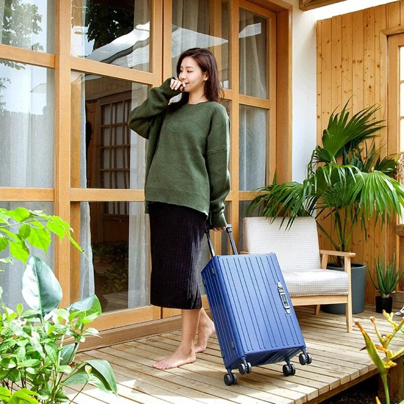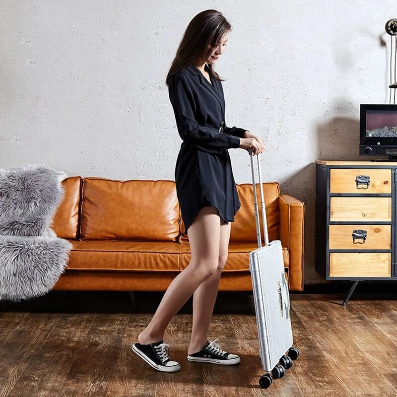 Introducing our 20in Portable Folding Password Suitcase, perfect for all your travel needs. This suitcase is designed with a durable and lightweight material, making it easy to maneuver and carry around. The folding feature allows for easy storage and the built-in password lock ensures the safety and security of your belongings.