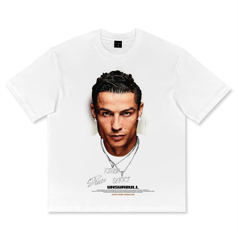 American vintage Men's cotton loose short sleeve cotton football T-shirt
