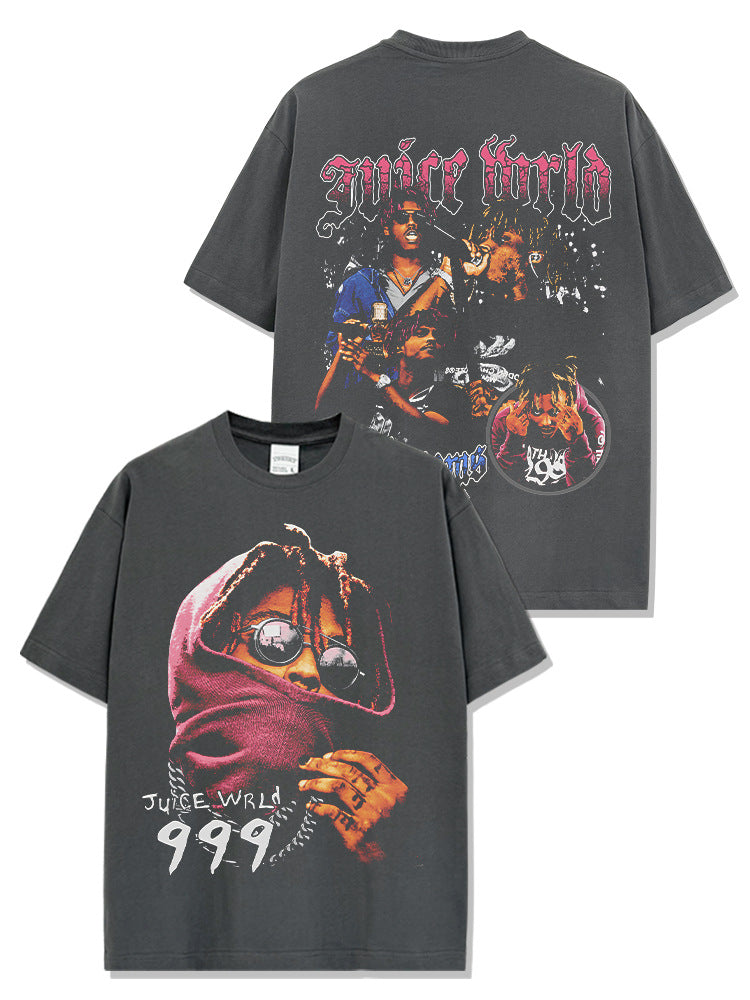 American vintage printed short sleeve T-shirt loose casual heavy round neck hoodie men