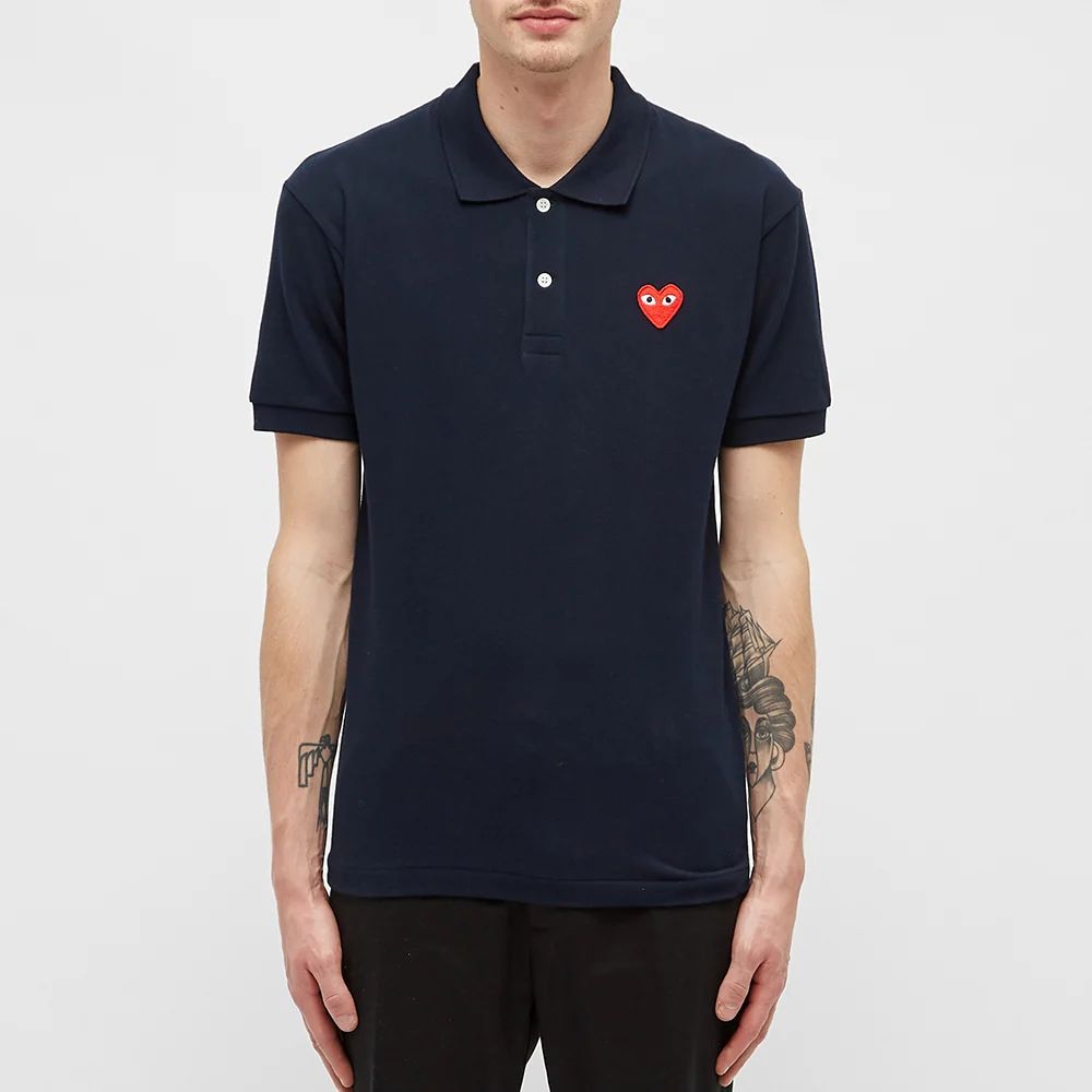 AMI trend PLAY love red heart black heart men's and women's folded heart POLO shirt couple short sleeve lapel T-shirt