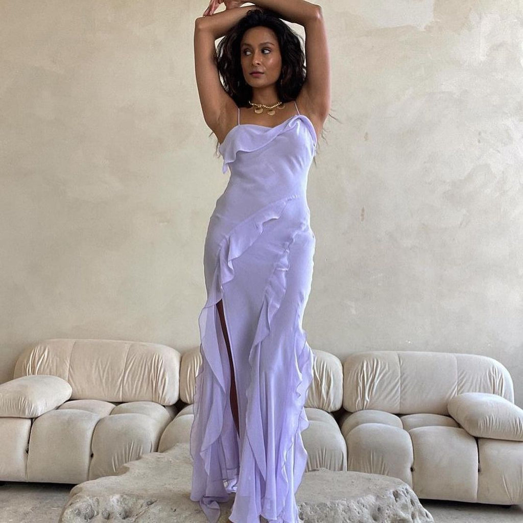 Burst chiffon sexy halter slit ruffled skirt