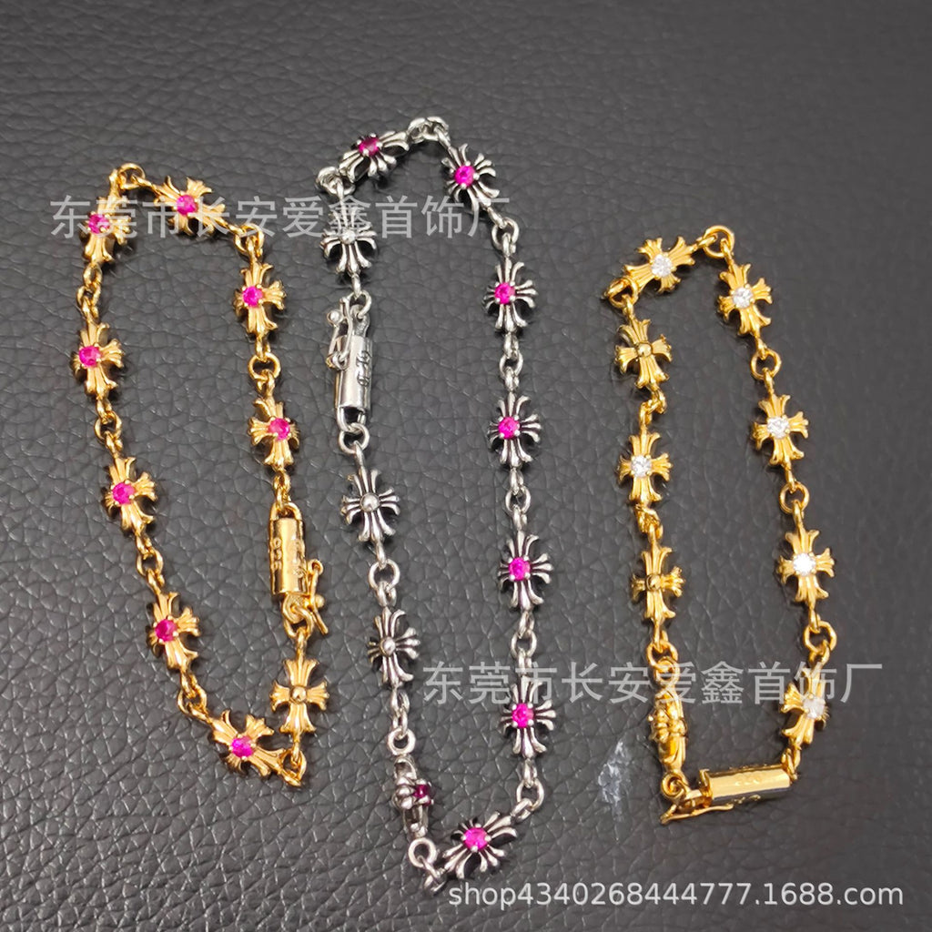 Chrome Hearts 22K Diamond Cross Bracelet