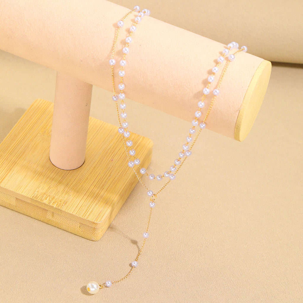 Fashion Y style imitation pearl fringe double layer necklace accessories