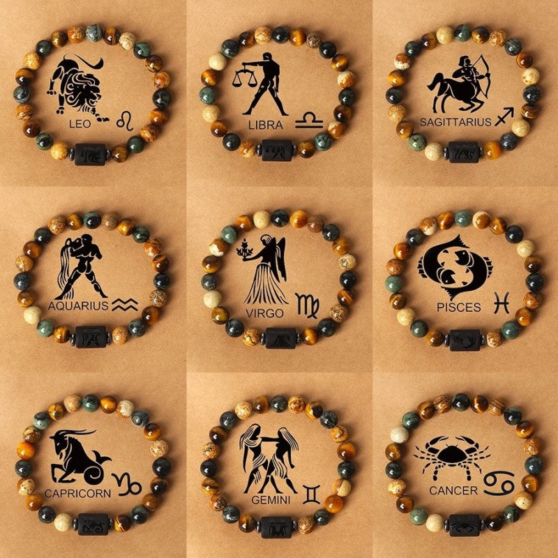 Fashionable natural stone beaded bracelets of the 12 zodiac signs, tiger's eye stone crystal bracelets and banges