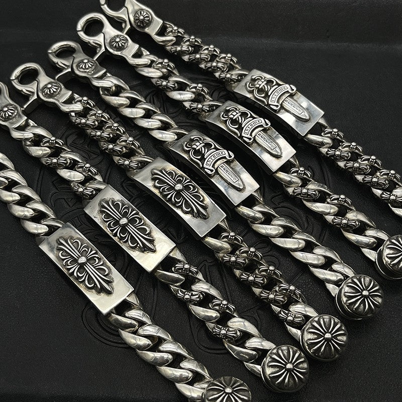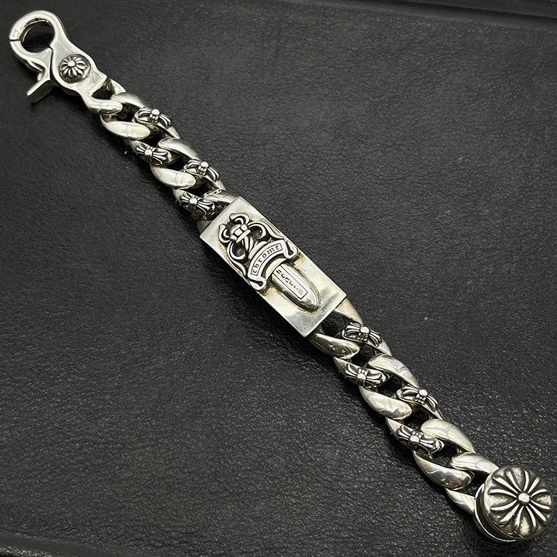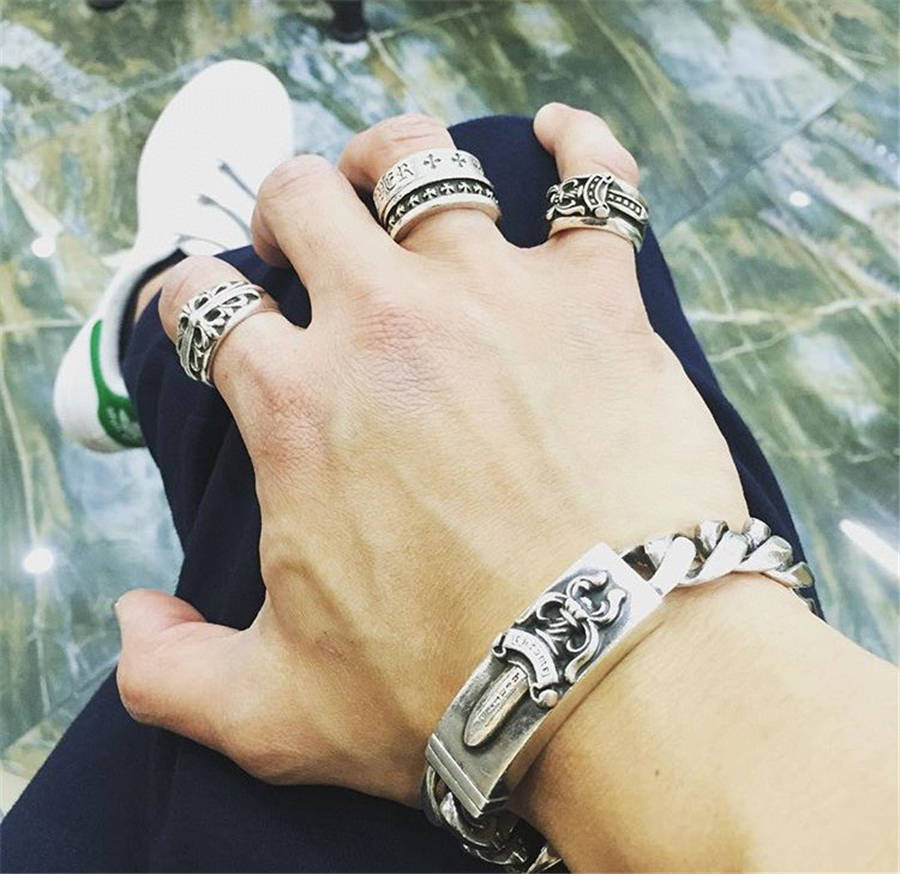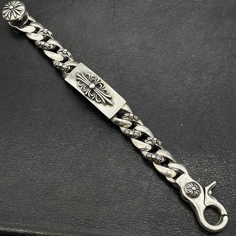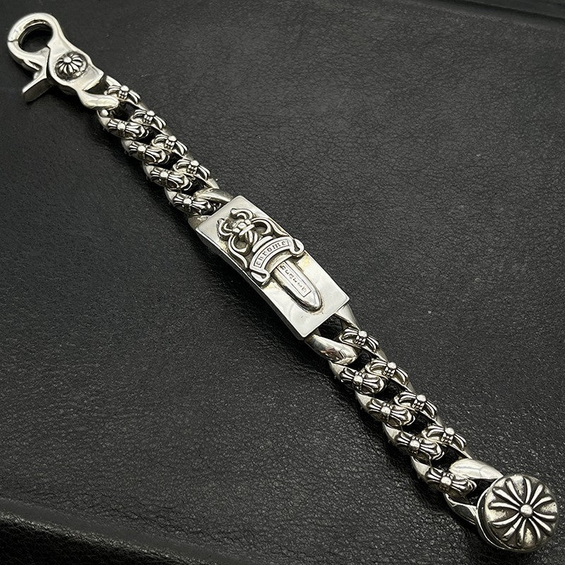 Fashionable Thai silver vintage do old sword lobster le big bracelet long cross flower for men and women hand jewelry
