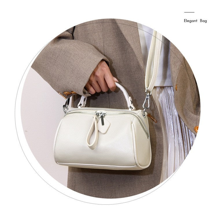 Genuine leather women's bag, Boston bag, commuter handbag, top layer cowhide crossbody bag