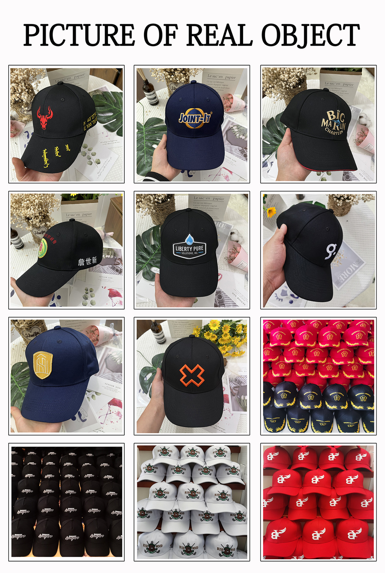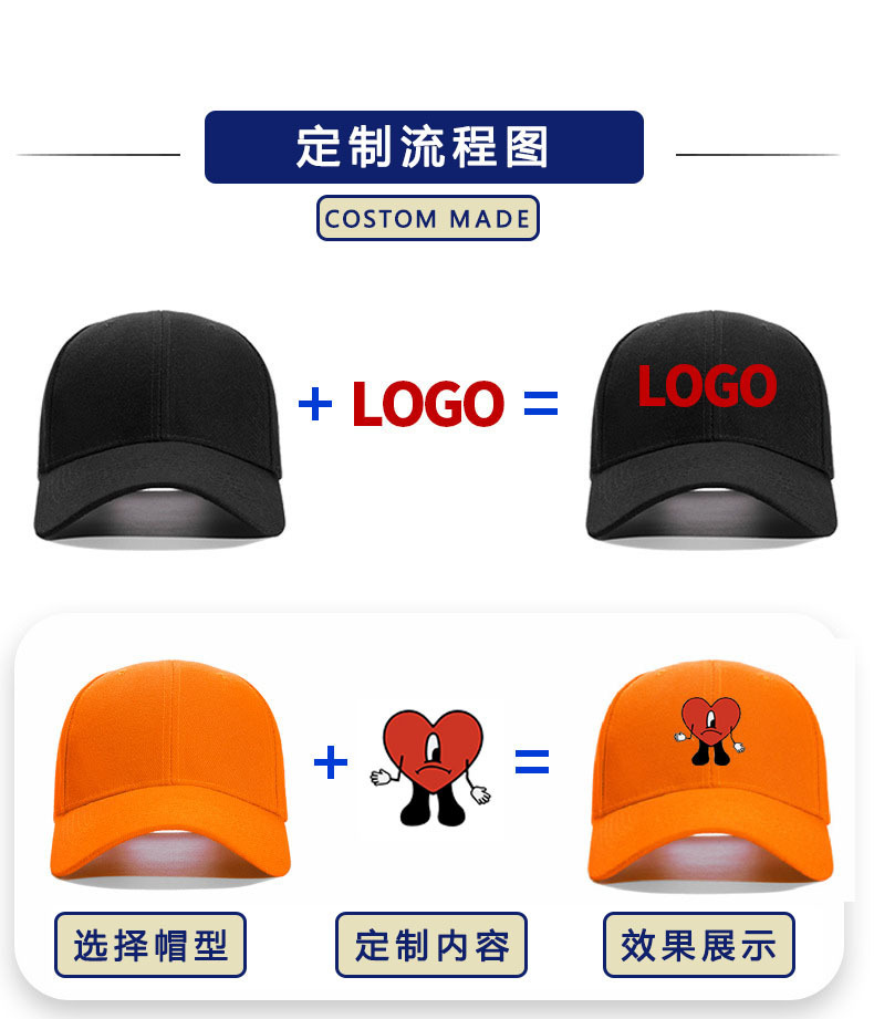 High-end pure cotton six-piece hardtop baseball cap for men and women with printed words and embroidery