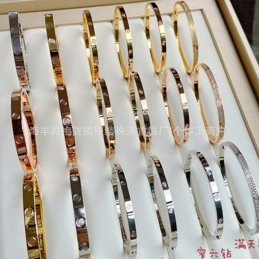K Family Fine thick-plated 18K gold, wide version, narrow version, full diamond, six diamonds bracelet,