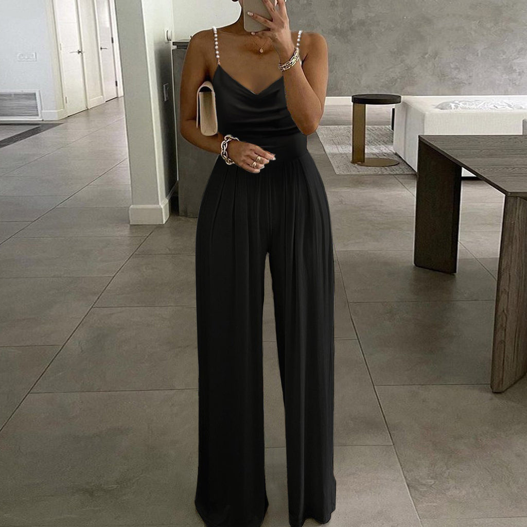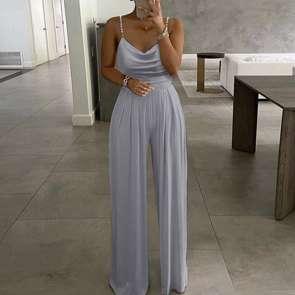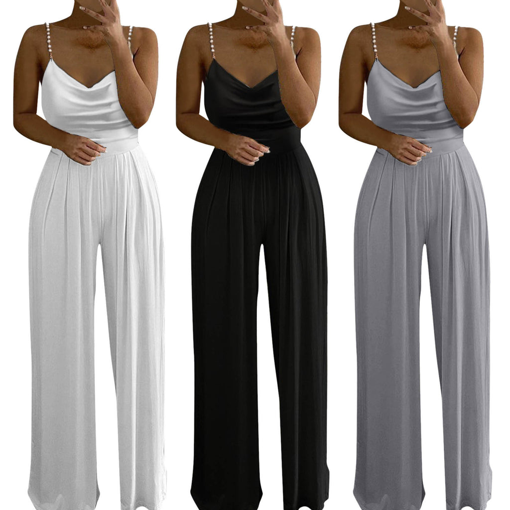 Ladies printed sleeveless top pearl halter wide leg jumpsuit