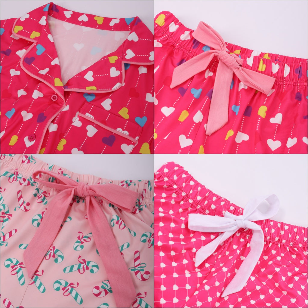 Ladies' red Christmas candy cane printed short sleeves, shorts, pajamas, summer home wear