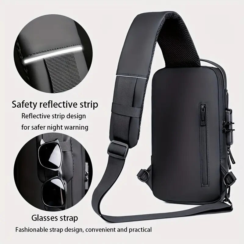 Men S Waterproof Motorcycle Chest Bag - Anti-Theft Shoulder Bag