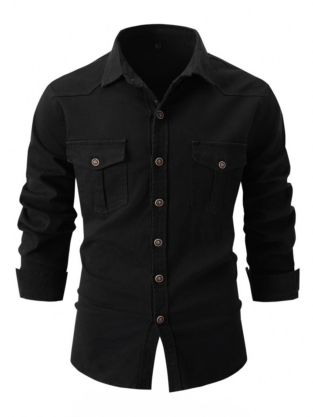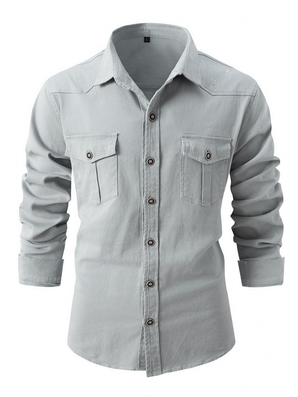 Men's European size wash elastic cotton casual fashion long sleeve shirt