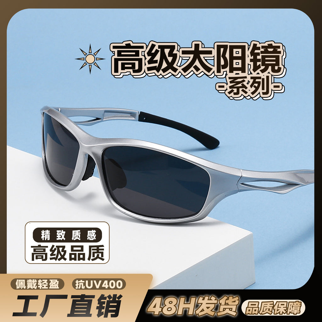 Futuristic silver Y2K men's, women's fashion cycling sunglasses connector Millennium Spice Sun