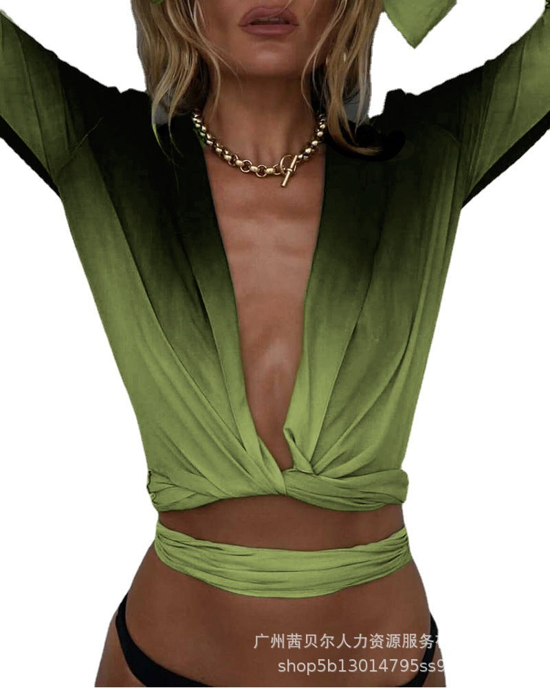 Green gradient lace-up top