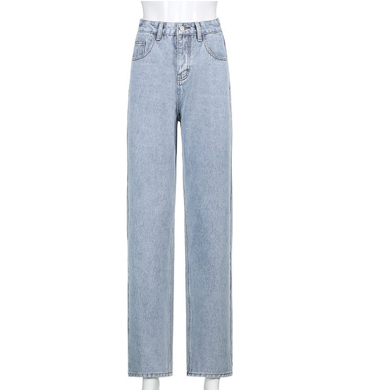Patchwork Plain High Waist Button Jeans