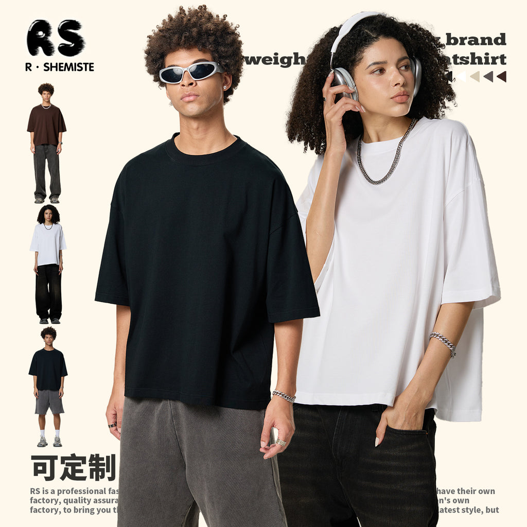 RS men Boxy square version 230G fashion cotton men short sleeve short wide T-shirt