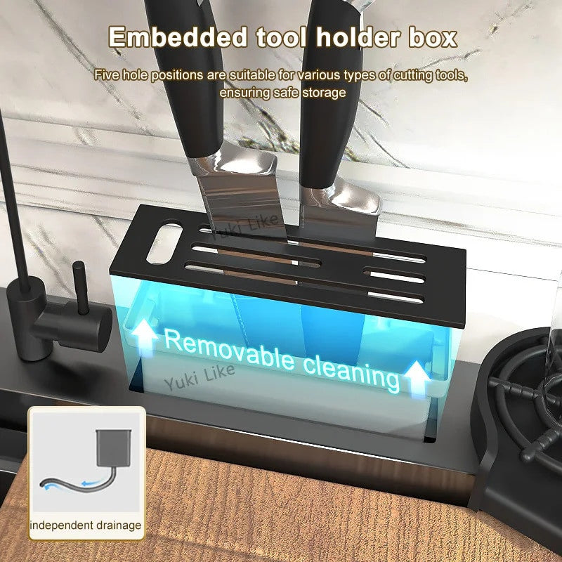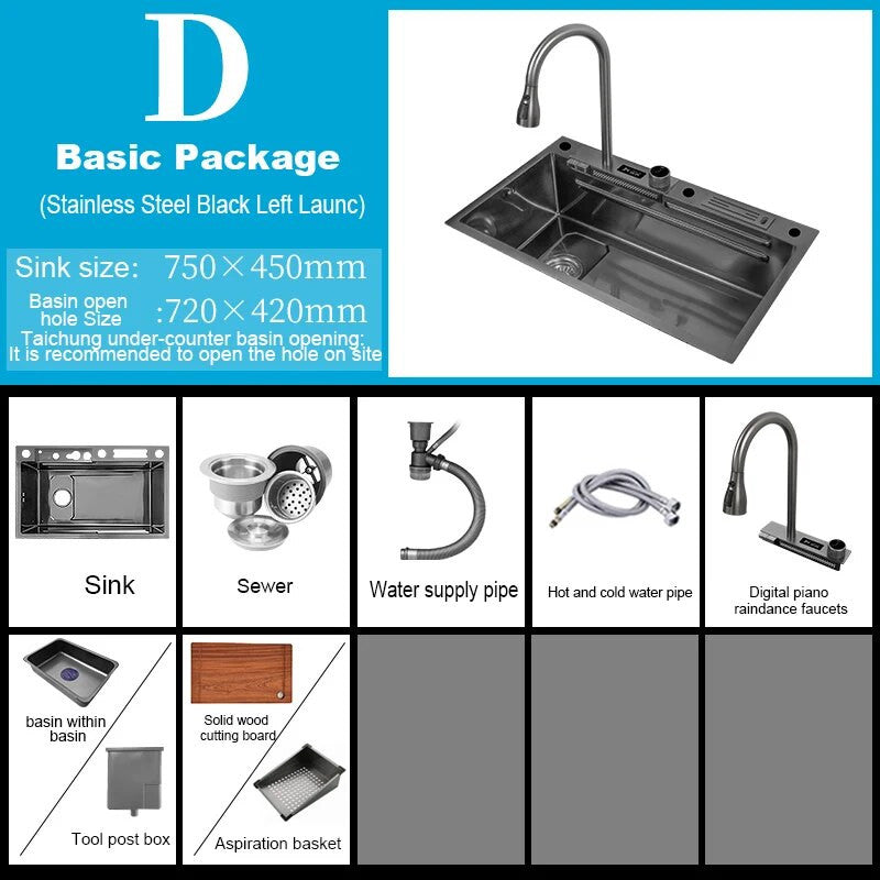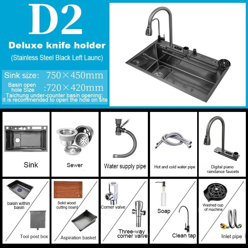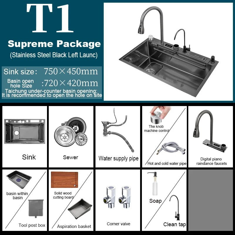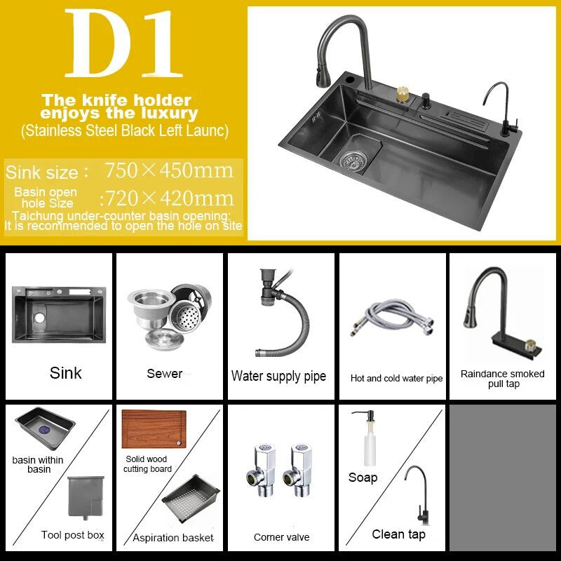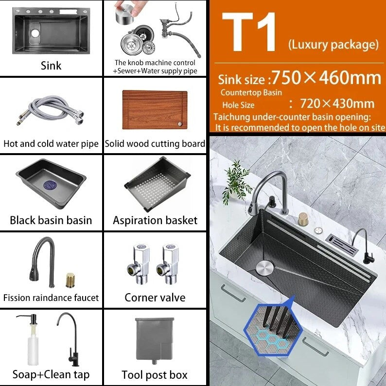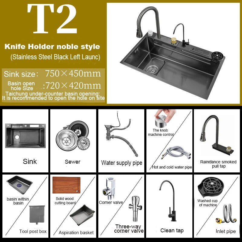 This stylish sink features a unique waterfall touch design, perfect for adding a touch of elegance to your kitchen space. Made from durable stainless steel, this sink is not only visually appealing but also built to last. The touch feature allows for easy operation, while the stainless steel material ensures easy cleaning and maintenance.