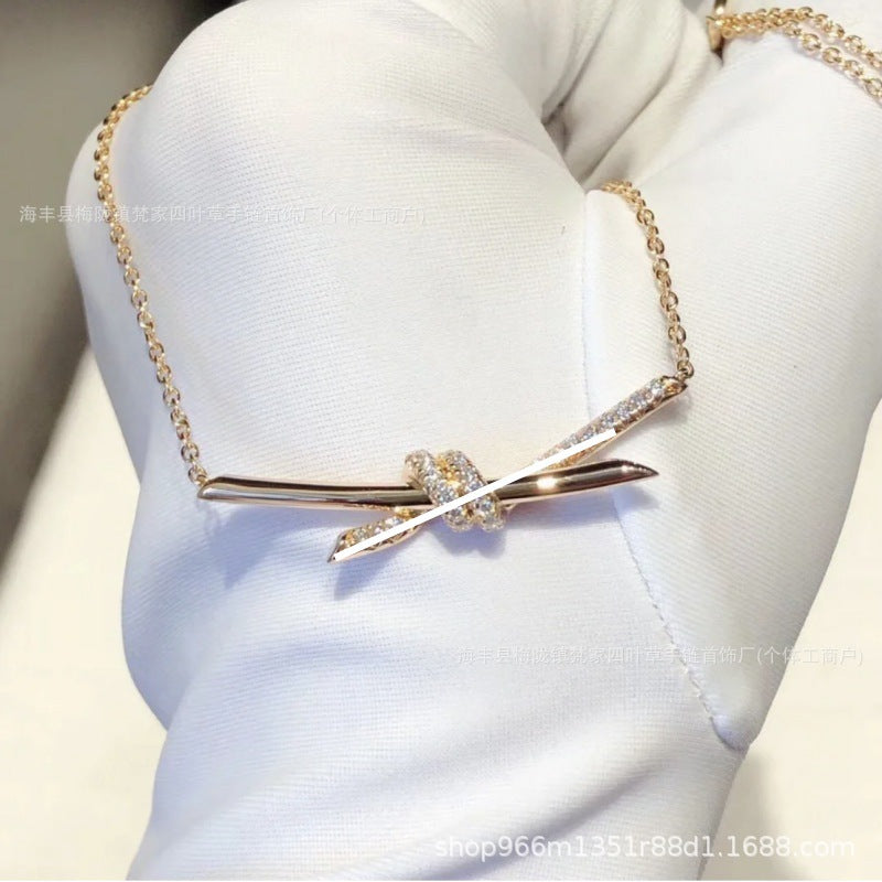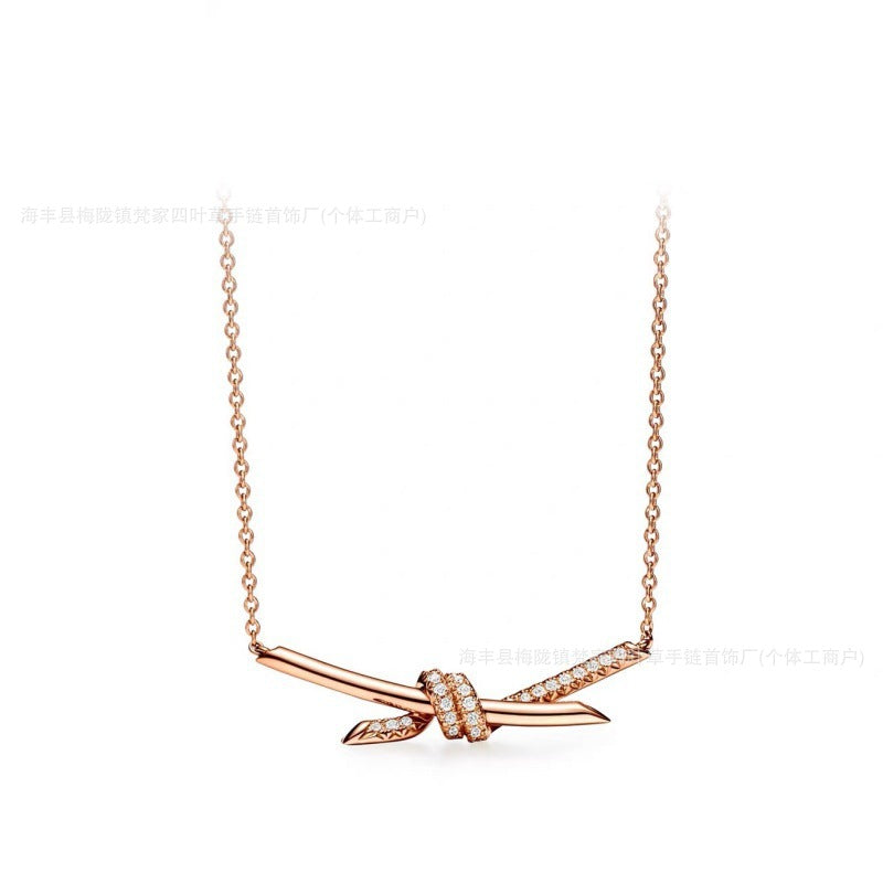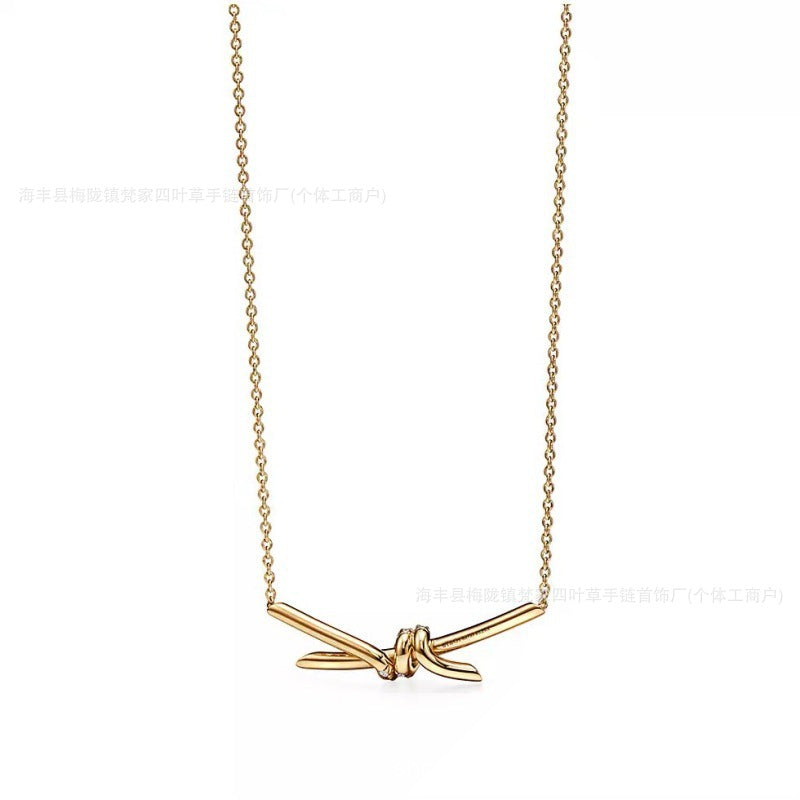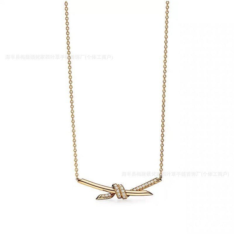 T home high version kinky necklace female 18K gold plated diamond bow pendant clavicle chain