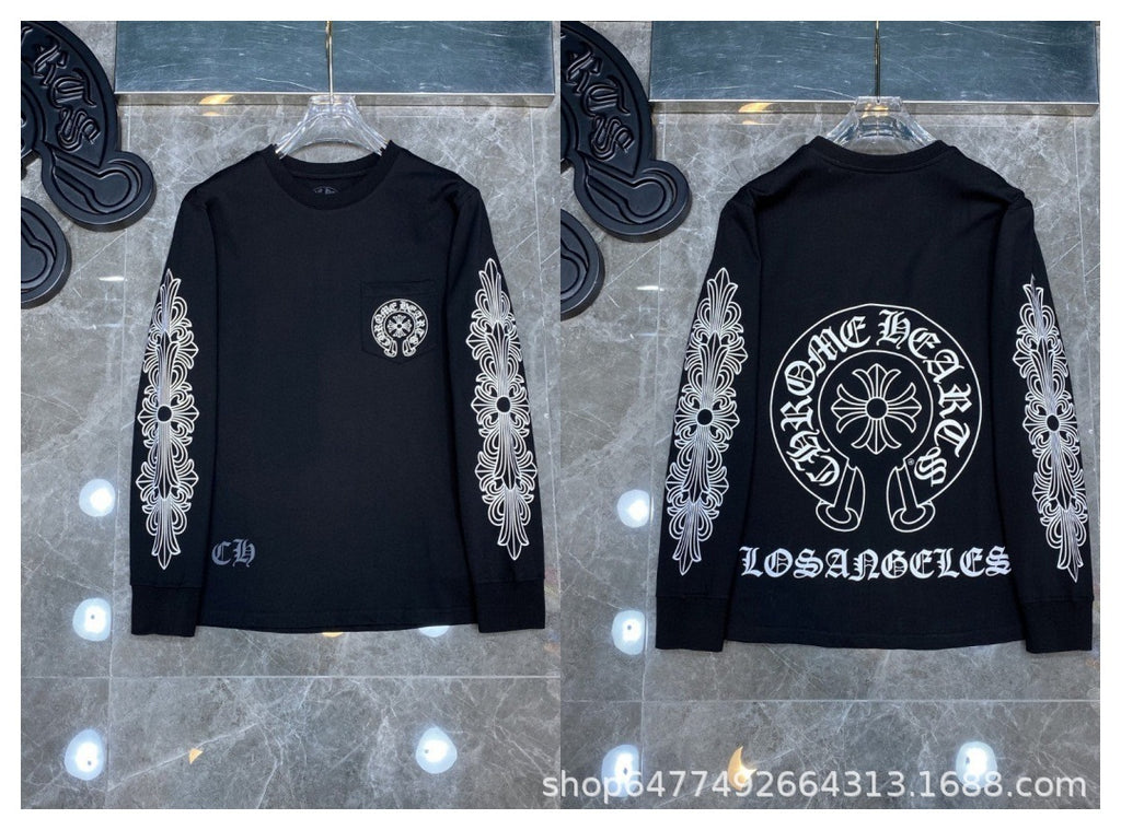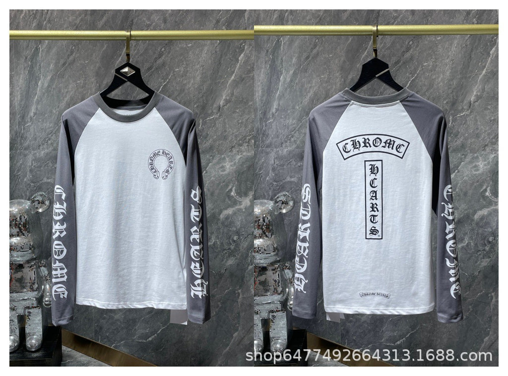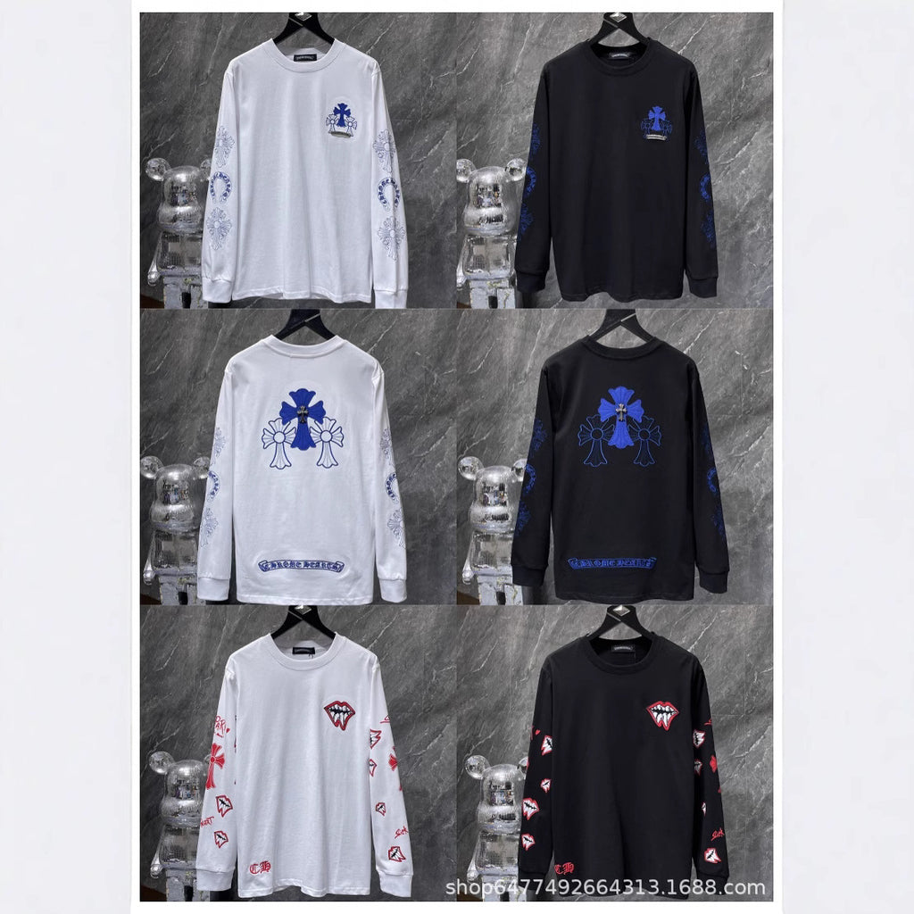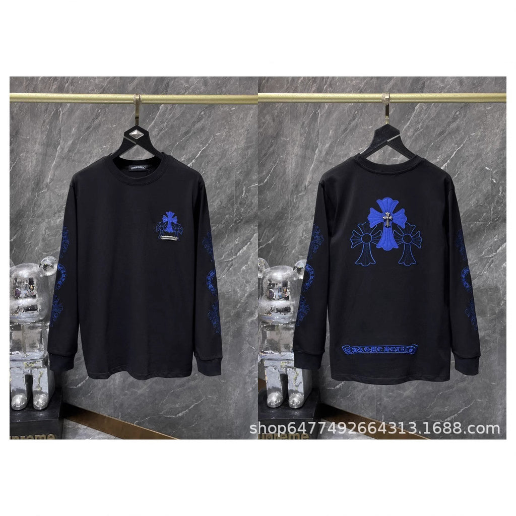 Tide CH correct edition Krosanskrit letters Blue Cross Arm Horseshoe Embroidery Long sleeve T