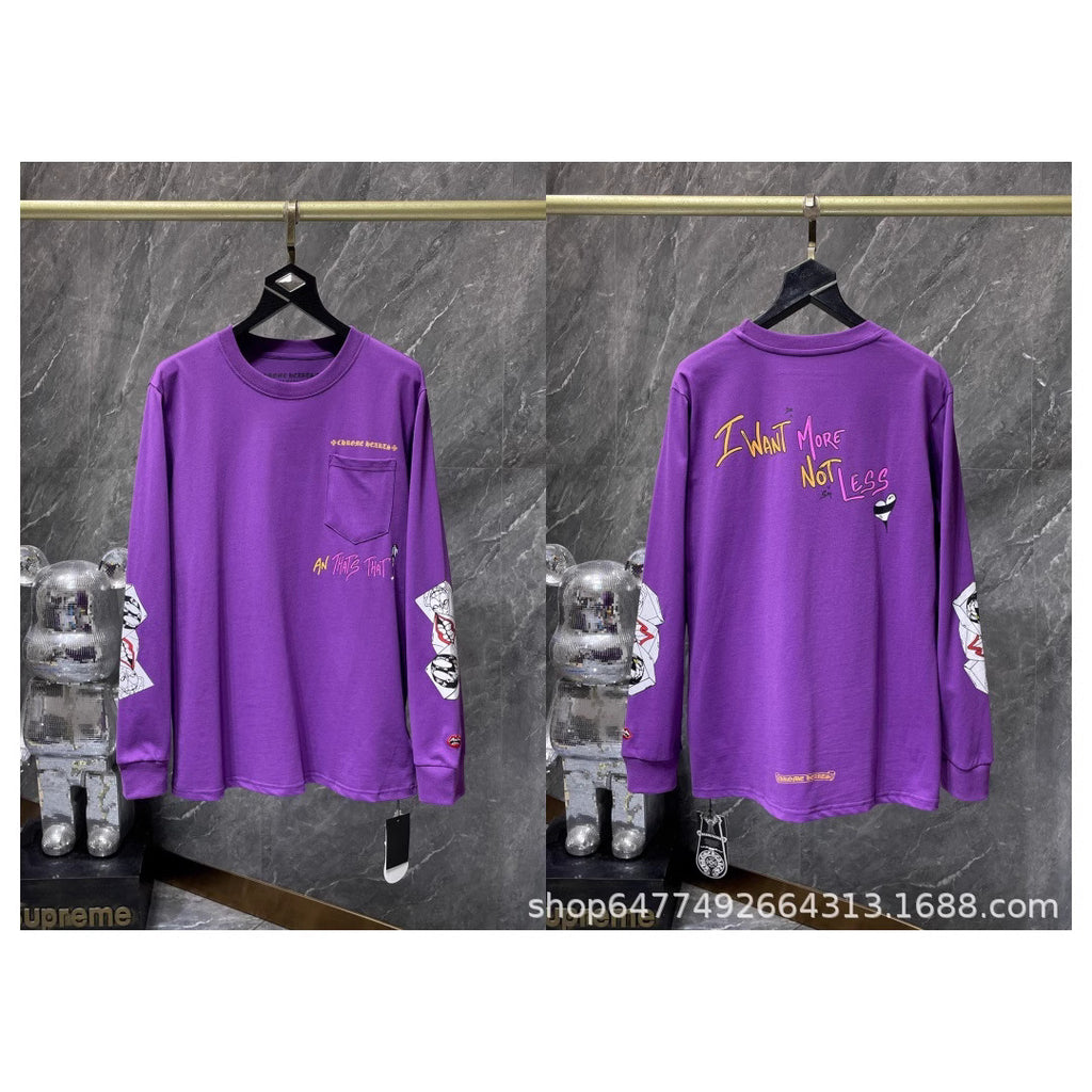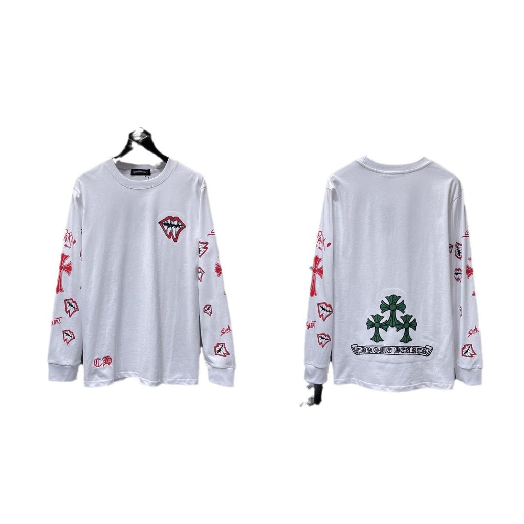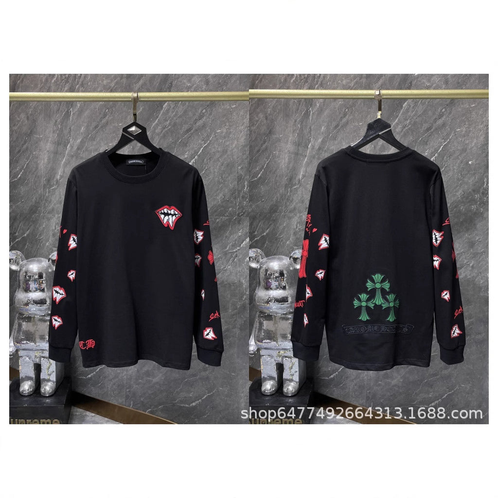 Tide CH correct edition Krosanskrit letters Blue Cross Arm Horseshoe Embroidery Long sleeve T