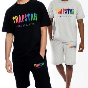 Trapstar Rainbow white and blue towel embroidered casual short sleeve shorts