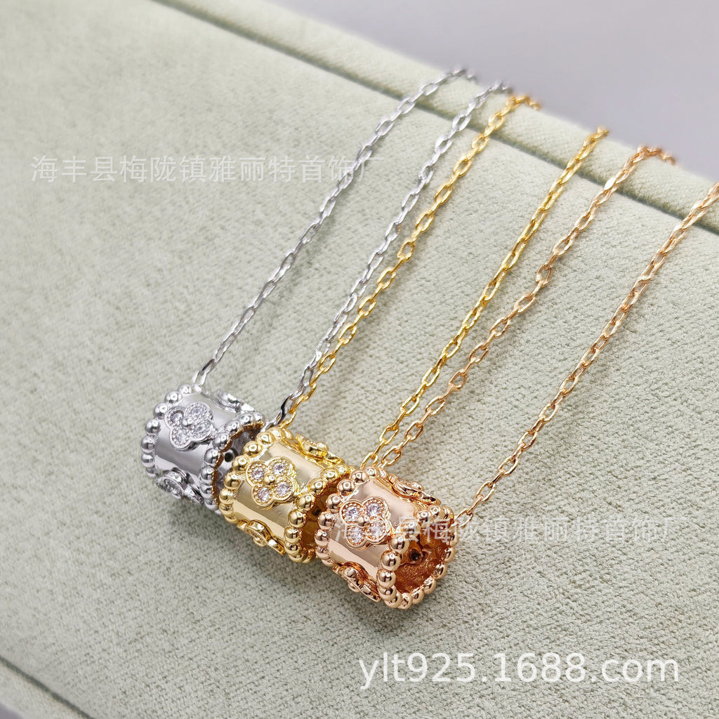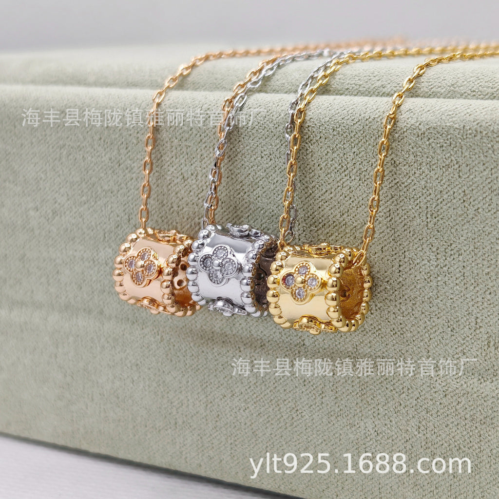V Gold high version four-leaf clover kaleidoscope women's high-grade light luxury 100 diamond waist pendant collarbone chain