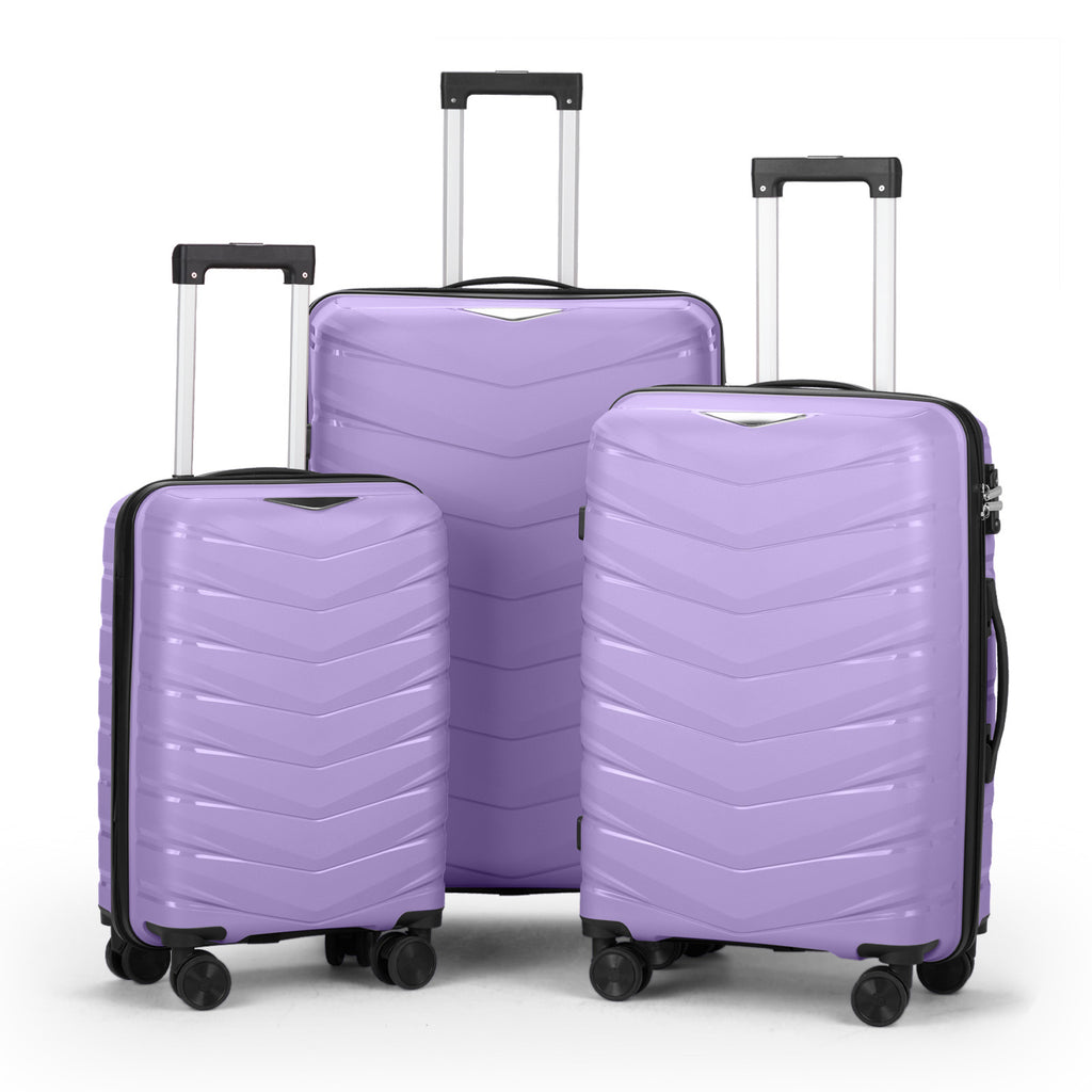 This FCH V-striped three-in-one PP trolley case, with its unique V-striped design combined with classic black particle texture, perfectly interprets the fashion and durability of modern travel luggage.