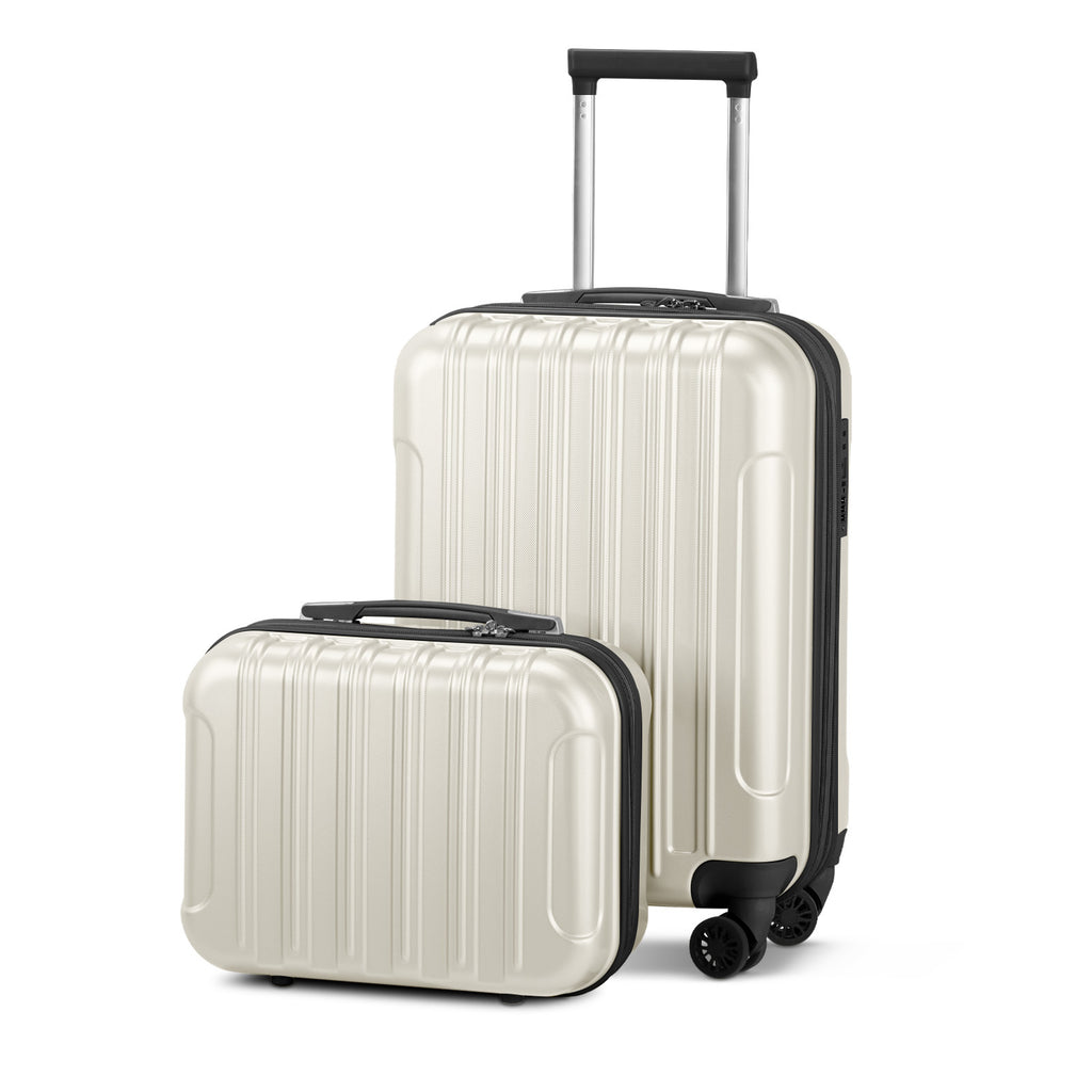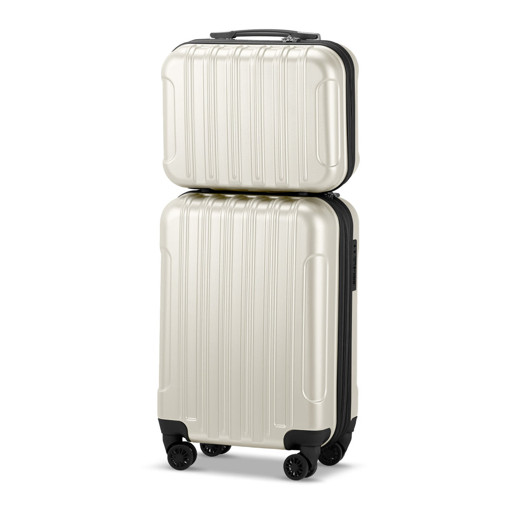 7.Package includes: 1 x 20" carry-on luggage (15.7" x 7.6" x 22.2", 6.17 lbs) and 1 x 14" (13" x 11.4" x 6.7", 2.2 lbs) cosmetic travel case. 20" suitcase fits Carry-on size requirements for most US and international airlines.